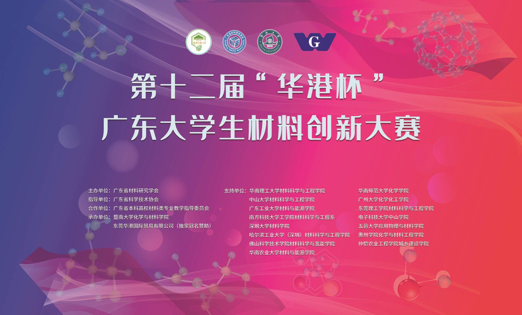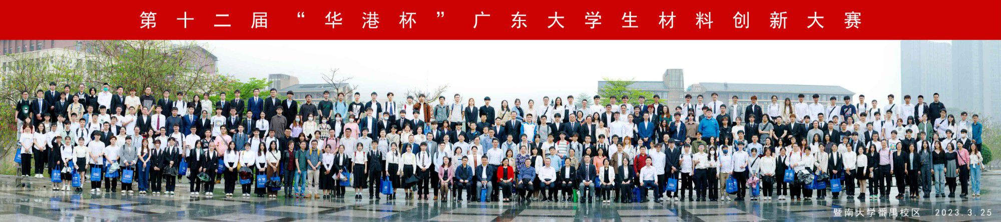 2023年3月25-26日,第十二届“华港杯”广东大学生材料创新大赛在暨南大学番禺校区隆重举行。来自广东省内外高校的领导、老师和参赛队伍代表近1000人齐聚暨南园,共启创新的春天盛会。大赛由广东省科协技术协会指导,广东省材料研究学会主办,广东省本科高校材料类专业教学指导委员会合办,暨南大学化学与材料学院和东莞华港国际贸易有限公司共同承办。
